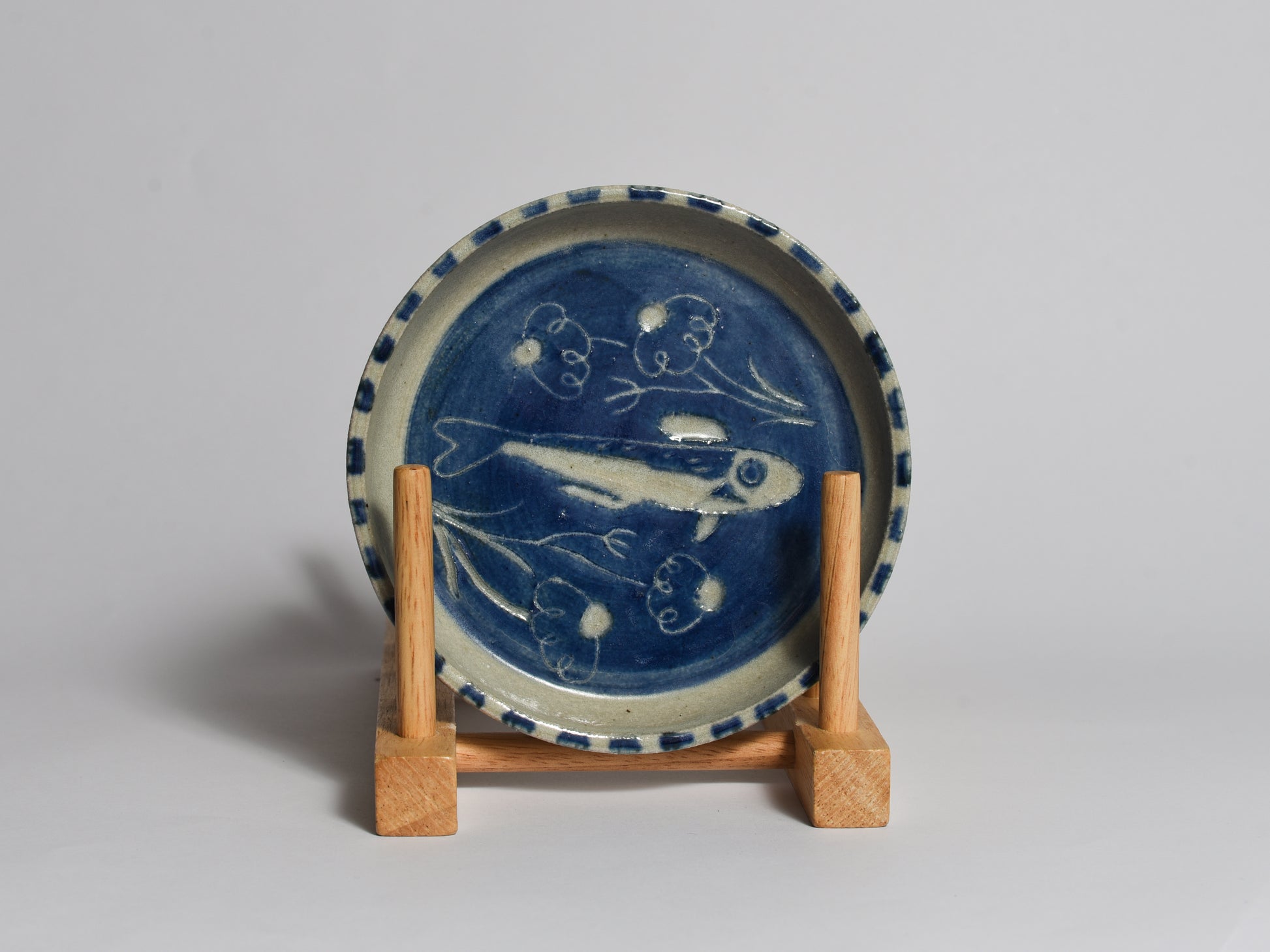 Add some whimsy to your kitchen with our deep blue Fish Flower Plate! This small plate features a charming design of fish and flowers, making it perfect for serving snacks or as a catch all for small items.