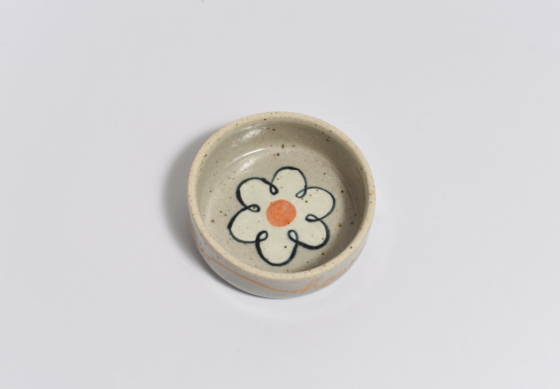 The perfect size for all your small belongings, this cute and bright catchall is a cute detail for any room. Use it for small trinkets or spices in the kitchen. Clear glaze.