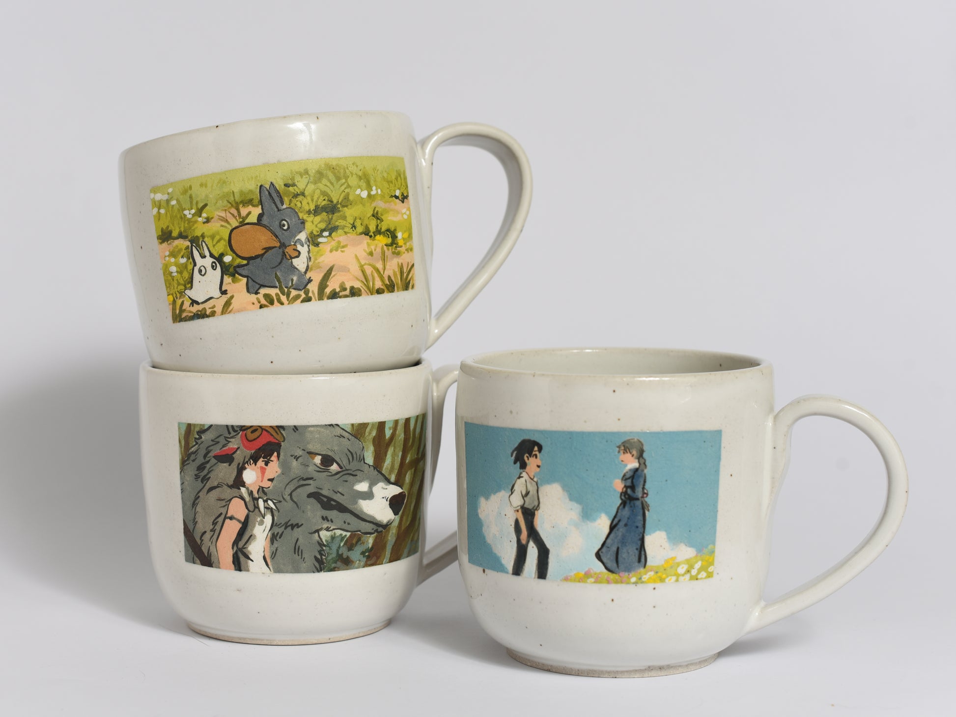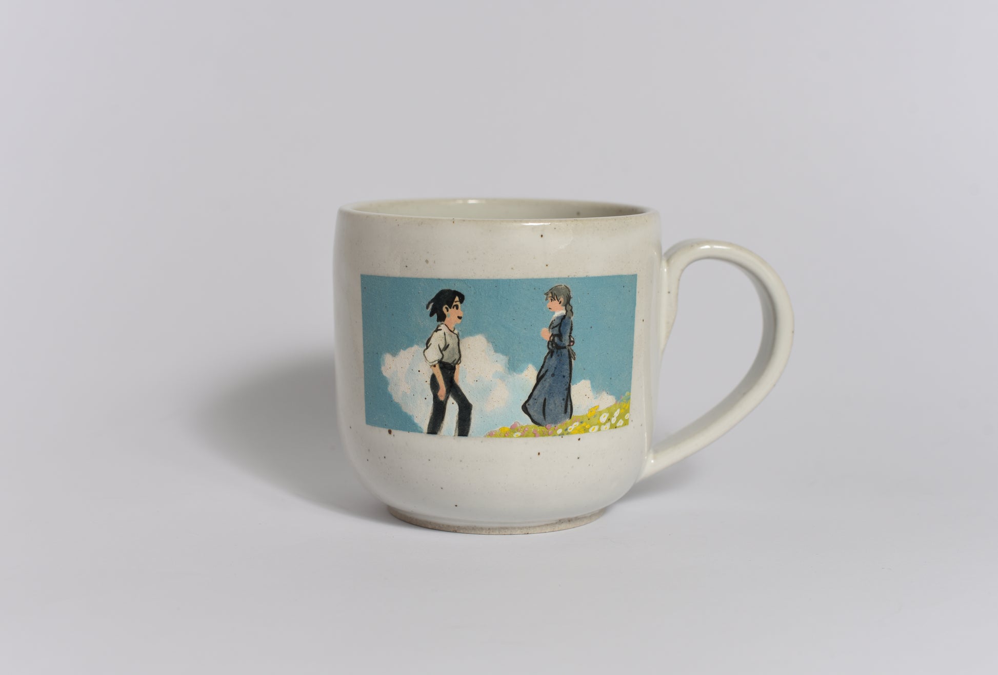 Featuring hand painted frame stills from the beloved Ghibli film, Howl's Moving Castle, this mug is sure to elevate your tea or coffee experience.