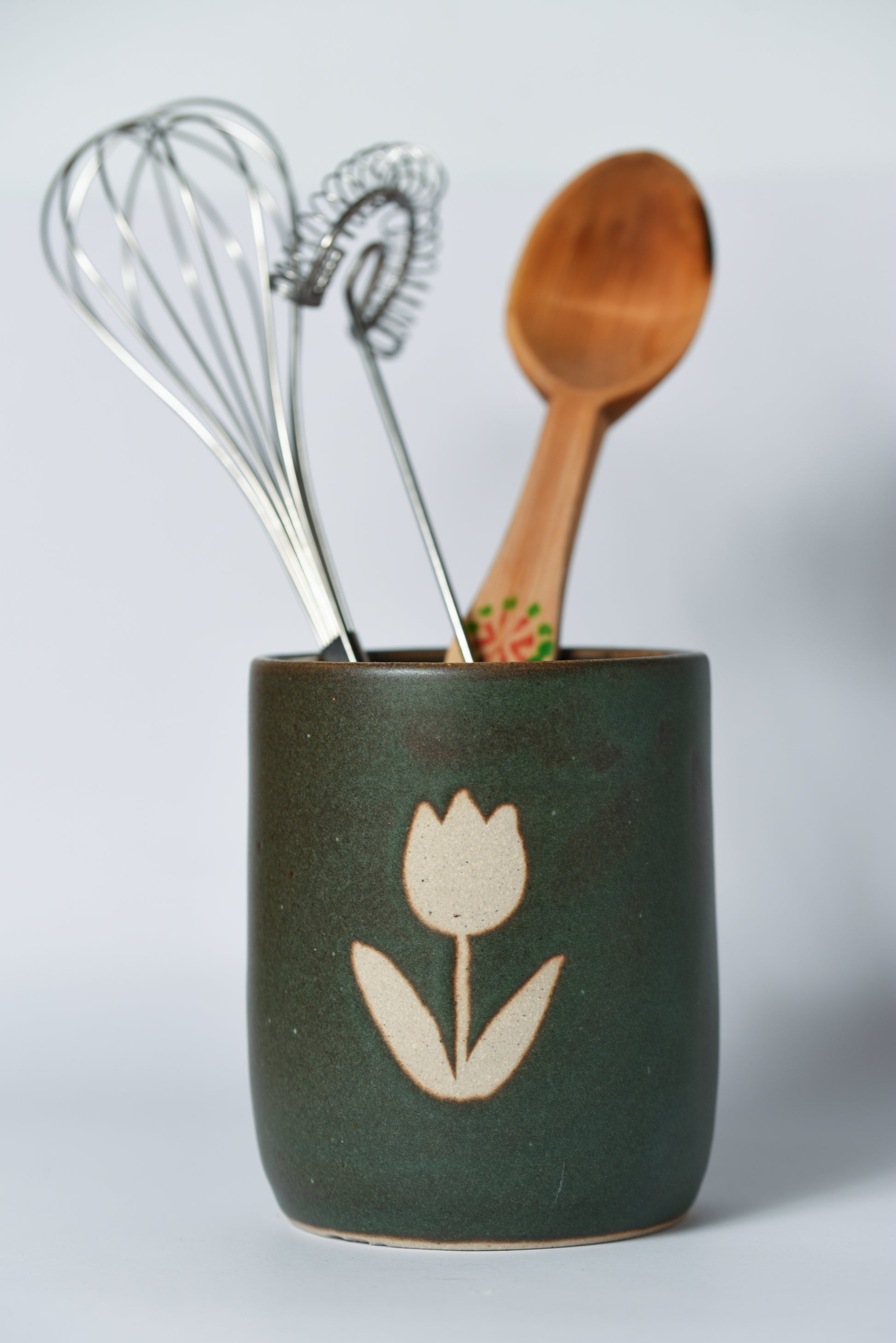 Keep your kitchen organized and stylish with the Tulip Utensil Holder. Not only is it cute, but its tulip design brings a fun design to your countertop.